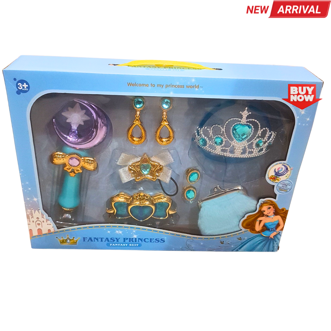 Let your little one step into a magical world of imagination with the Fantasy Princess Dress-Up Jewelry Set β the perfect gift for young girls who dream of being royalty! This all-in-one role-play kit includes a sparkling princess crown, magic wand, earrings, necklace, bracelets, purse, and more, beautifully designed with shiny gems and glittery finishes to make every dress-up session truly enchanting.