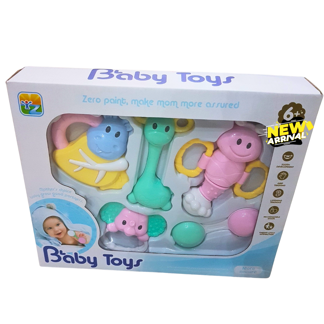 🐘 Baby Rattle & Teether Toy Set – Safe BPA-Free Sensory Toys for Infants | 6+ Months Developmental Gift Pack (Zero Paint, Soft Colors)