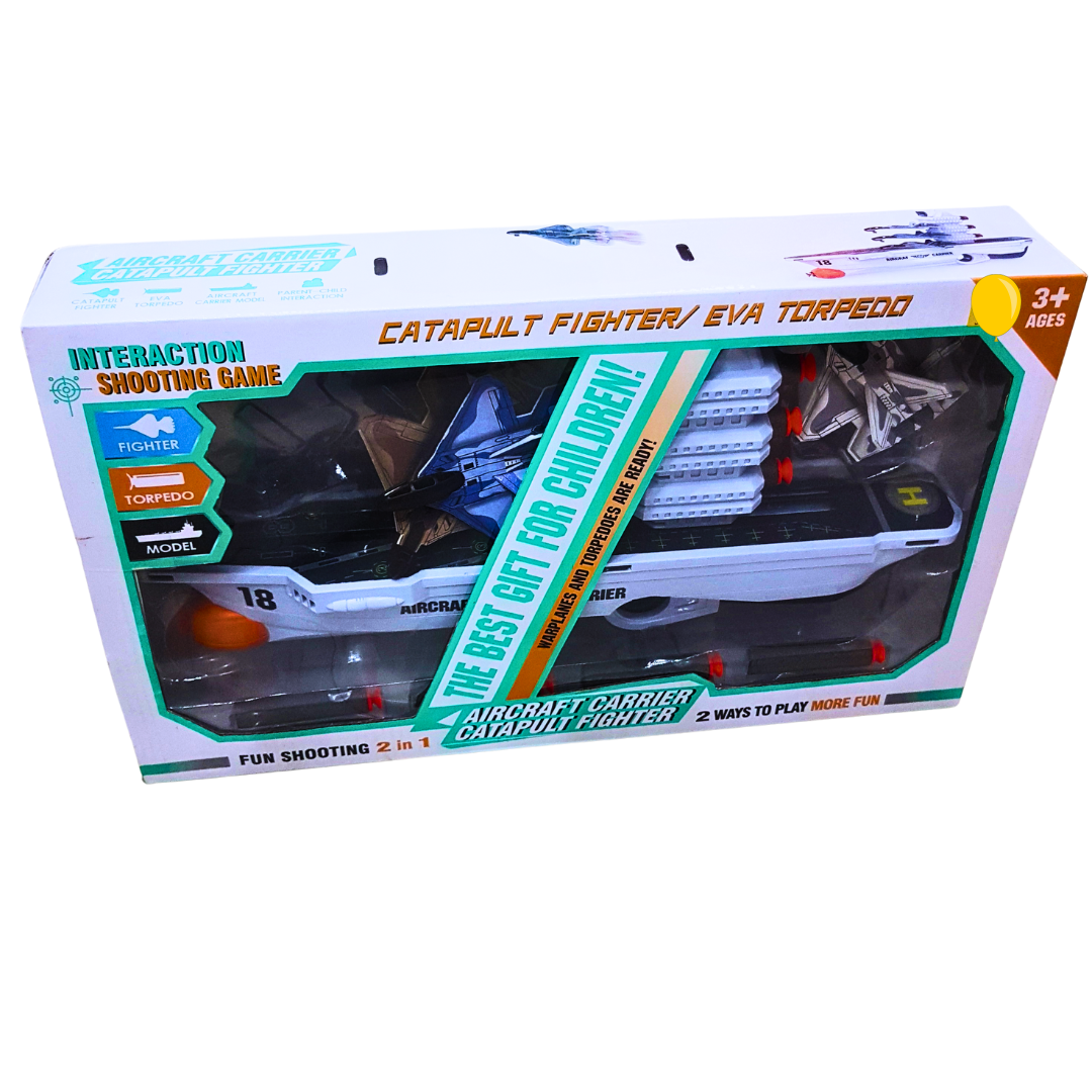 Launch your child's imagination into action with this thrilling Aircraft Carrier Catapult Fighter Toy Set! Designed for kids aged 3 and up, this interactive playset offers two exciting ways to play. It includes a realistic aircraft carrier equipped with a fighter plane and torpedoes for endless fun. Kids can launch the catapult fighter and fire EVA torpedoes, bringing military-themed adventures to life.