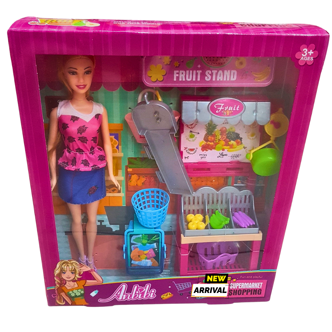 Anbibi Fruit Stand Doll Playset – Supermarket Shopping Adventure Toy – Educational Pretend Play for Kids (3+ Years)