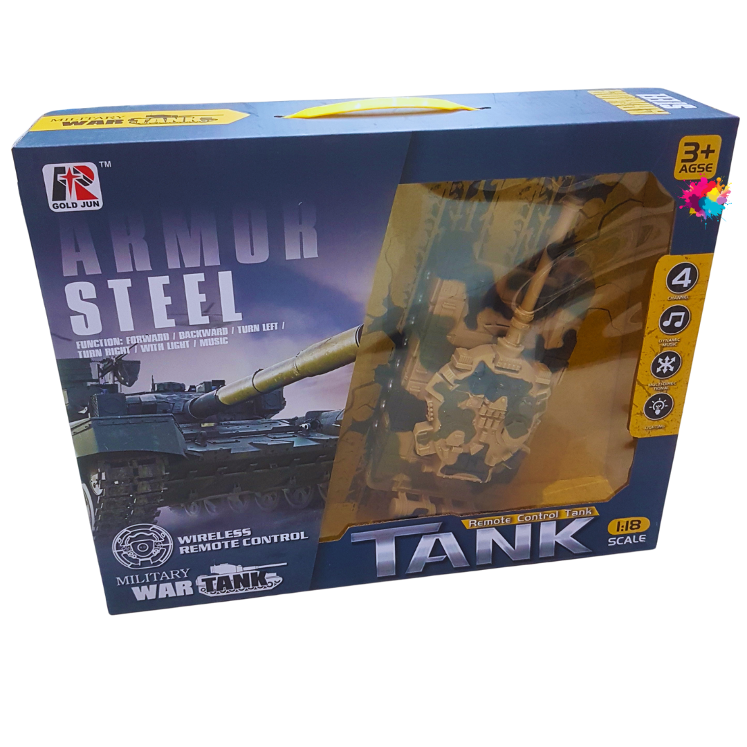 Armor Steel Remote Control Tank - 1:18 Scale Military War Tank Toy for Kids Aged 3+