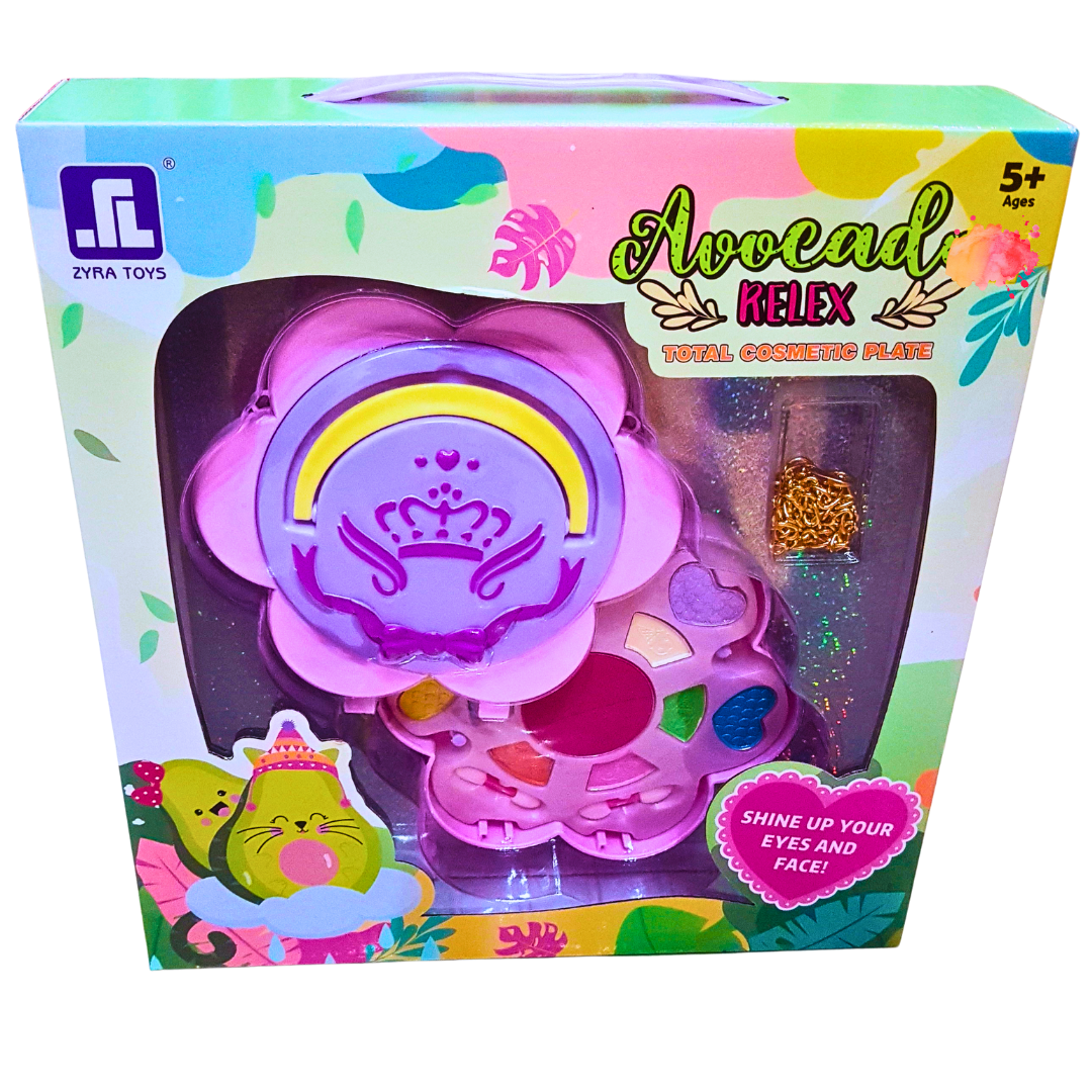 Delight your child with the **Avocado Relax Total Cosmetic Plate**, a whimsical and fun makeup playset designed for kids aged 5 and above. This beautifully crafted set features a unique flower-shaped case that unfolds to reveal a complete range of colorful cosmetics. Perfect for little ones who love to play dress-up, this set offers endless opportunities for creative play and self-expression.