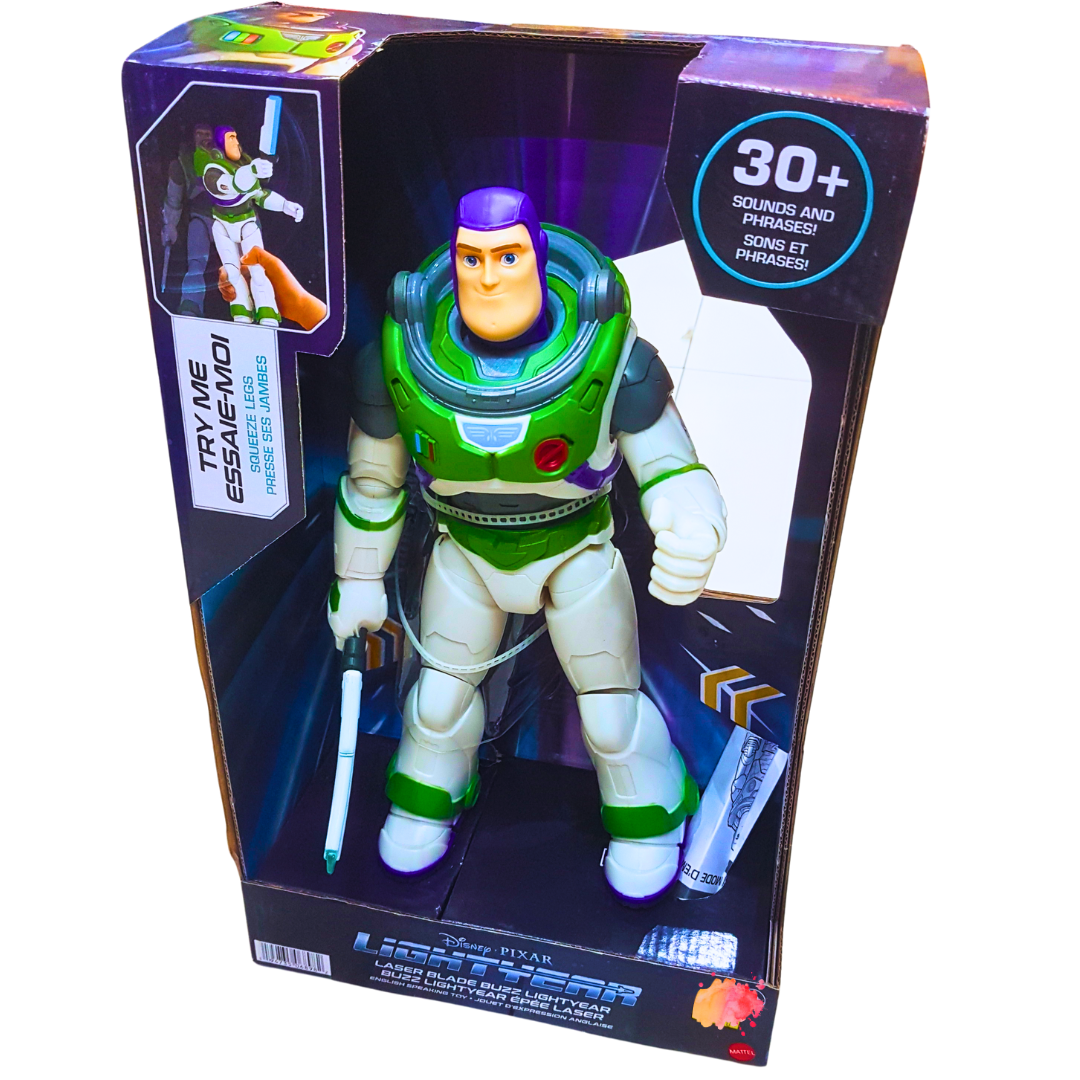 - **Interactive Sounds and Phrases**: Features over 30 sounds and phrases that bring Buzz Lightyear to life, enhancing the play experience.