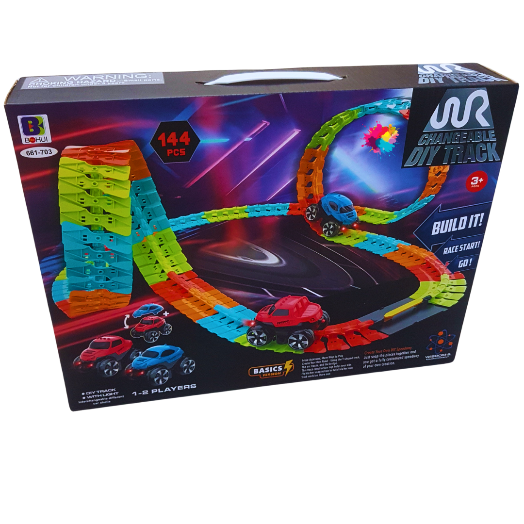 Take your child's creativity and racing excitement to the next level with the Changeable DIY Track Set! Perfect for children aged 3 and above, this extensive set includes 144 pieces that can be easily assembled into a variety of thrilling track configurations. Featuring vibrant colors, exciting loops, and racing cars, this set provides endless hours of fun and imaginative play.