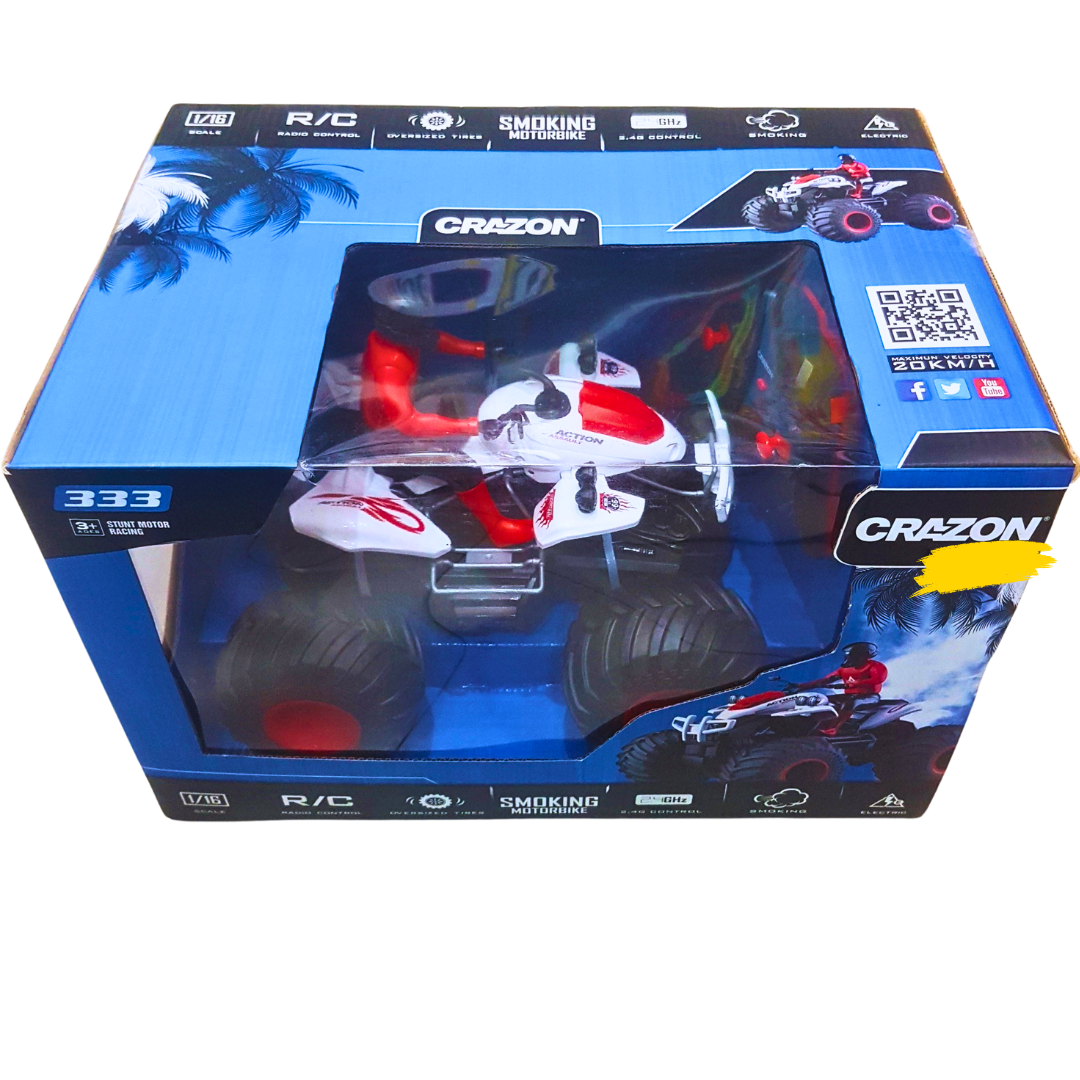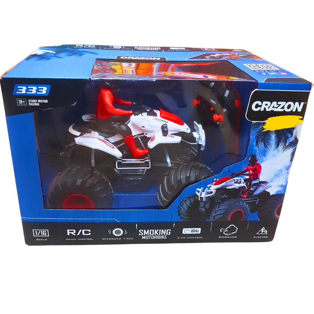CraZon 1:16 Scale RC Stunt Motorbike – High-Speed Remote Control Quad Bike with Oversized Tires & Realistic Smoke Effect (20KM/H, 2.4GHz Control, Rechargeable)