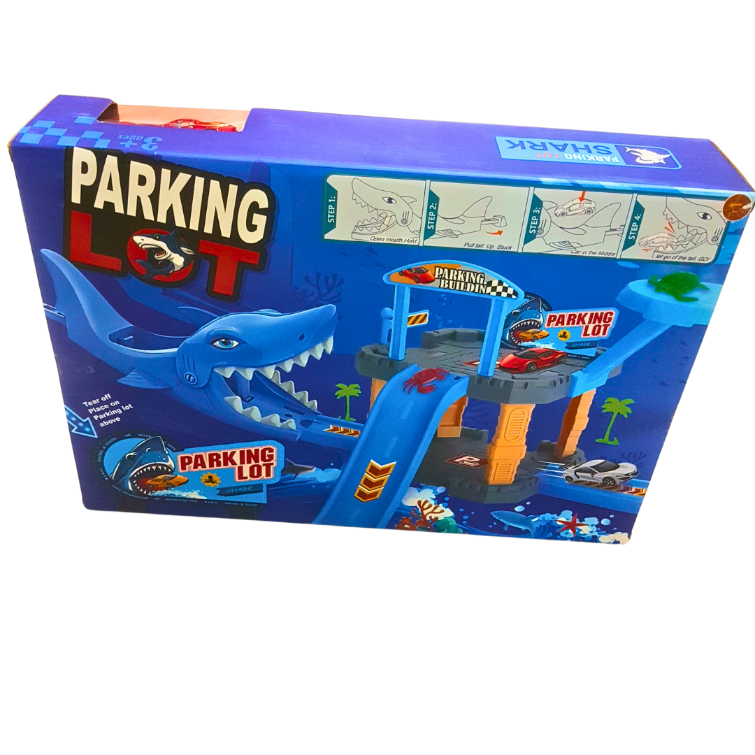 Get ready for wild ocean adventures with the Shark Parking Lot Playset, a thrilling track toy featuring a massive shark-shaped tunnel, speedy car launcher, and multi-level parking platform! Kids can launch their car down the ramp, dodge the jaws of the shark, and race through underwater-themed twists and turns.