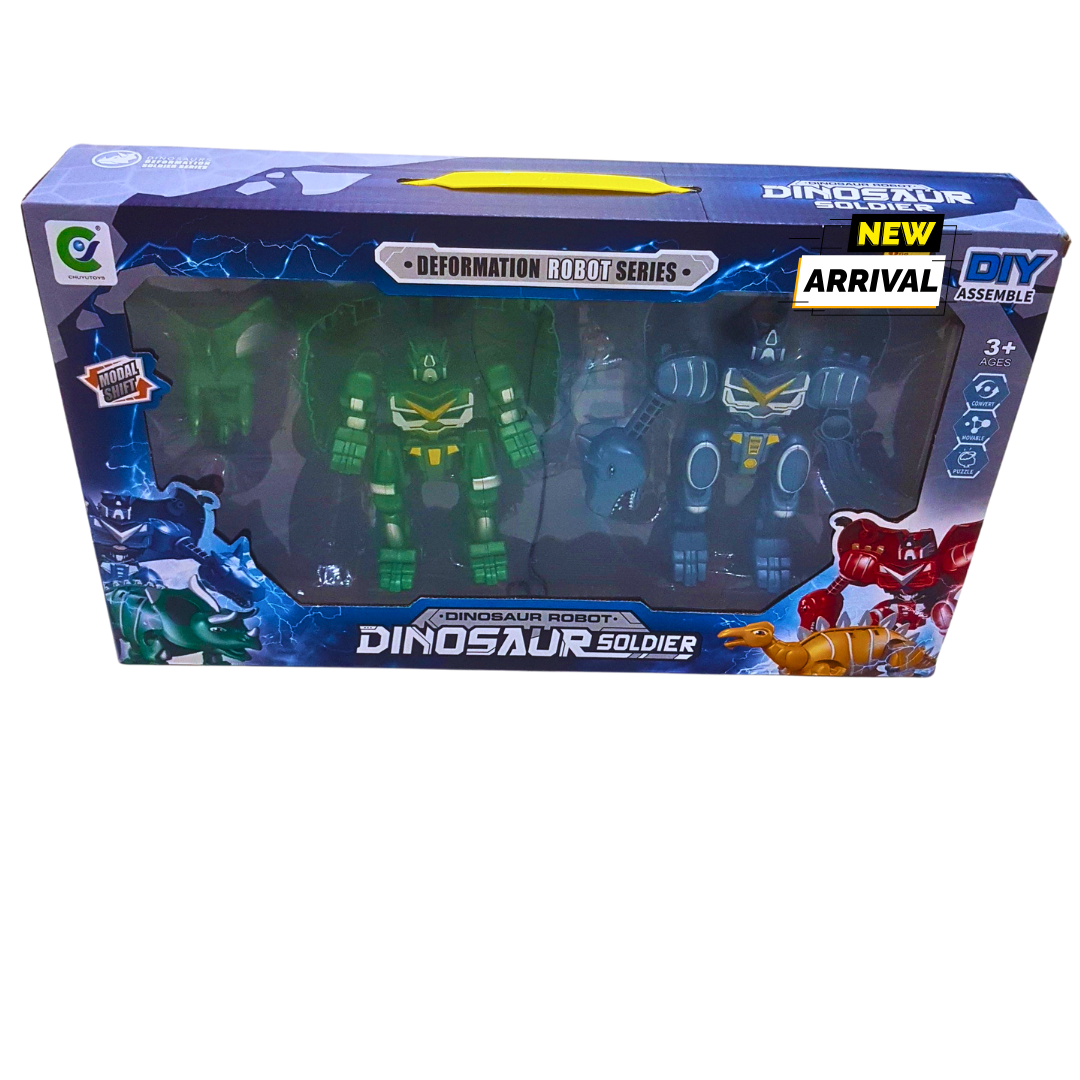 The Dinosaur Soldier Deformation Robot Series is an exciting DIY transformable robot set designed for kids aged 3 and above. This set includes two dynamic dinosaur-themed robots that can switch between robot and dinosaur forms, offering endless creative play. Featuring a "Modal Shift" transformation system, these robots allow children to assemble and modify their figures for a personalized experience. With vibrant colors and a futuristic design, this toy set is perfect for young fans of robots and dinosaurs alike.