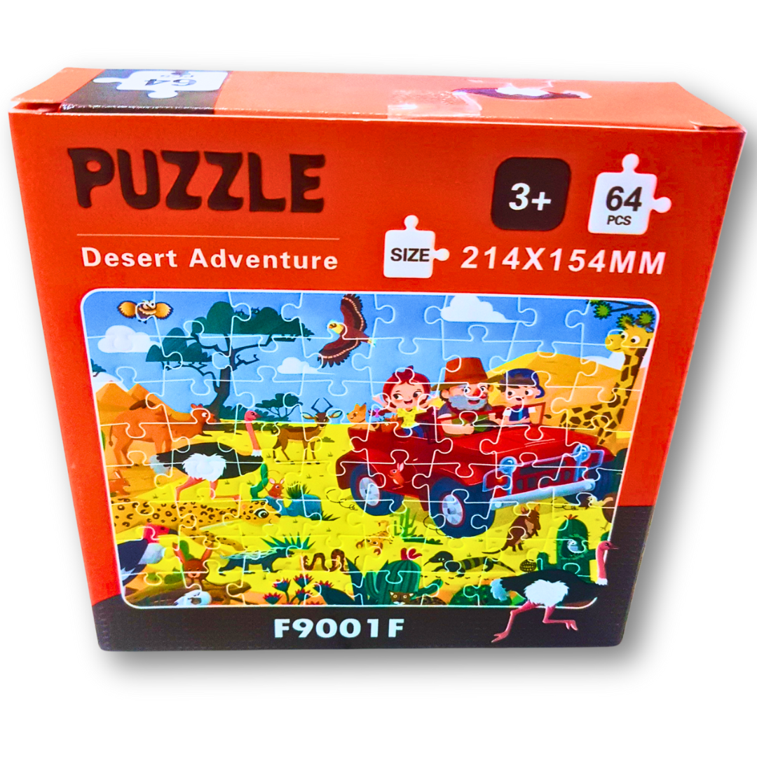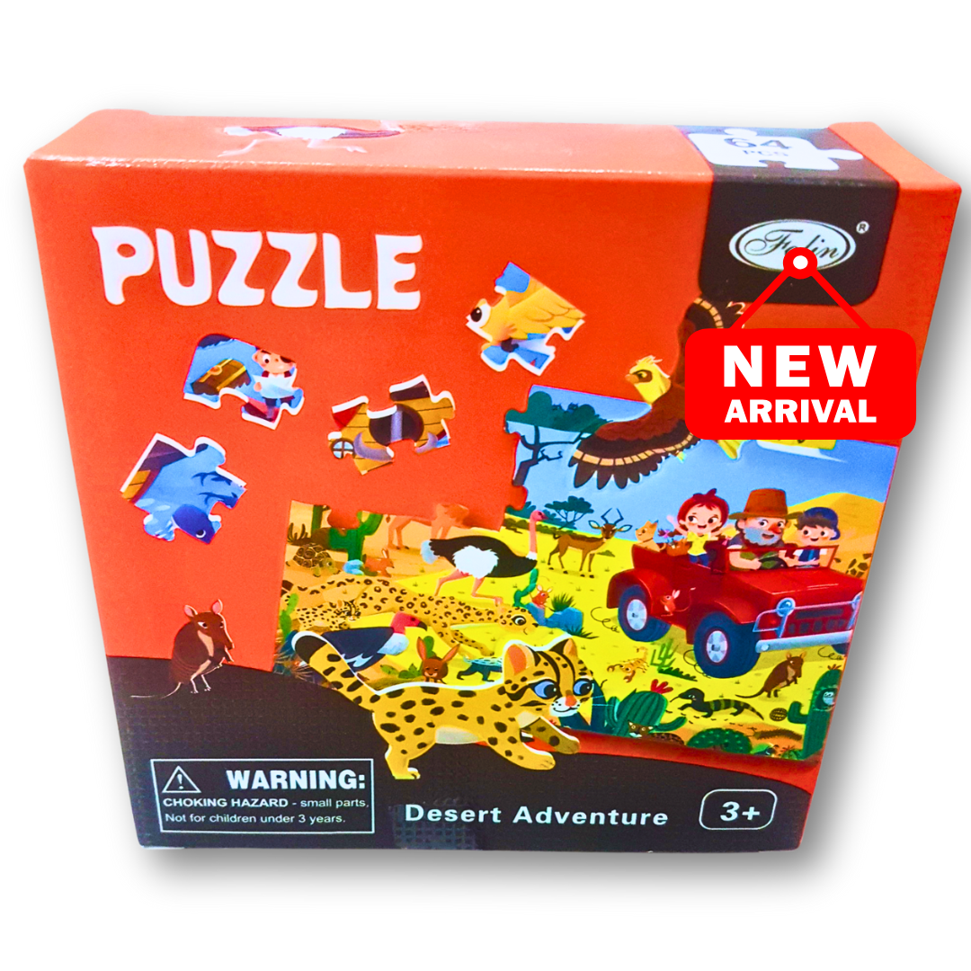 π Embark on a thrilling journey with the Desert Adventure Puzzle! This 64-piece jigsaw showcases a vibrant desert safari scene, featuring wild animals, explorers, and a fun desert landscape. Perfect for kids aged 3+ years, this puzzle is a fantastic way to boost problem-solving skills, concentration, and creativity while having fun!