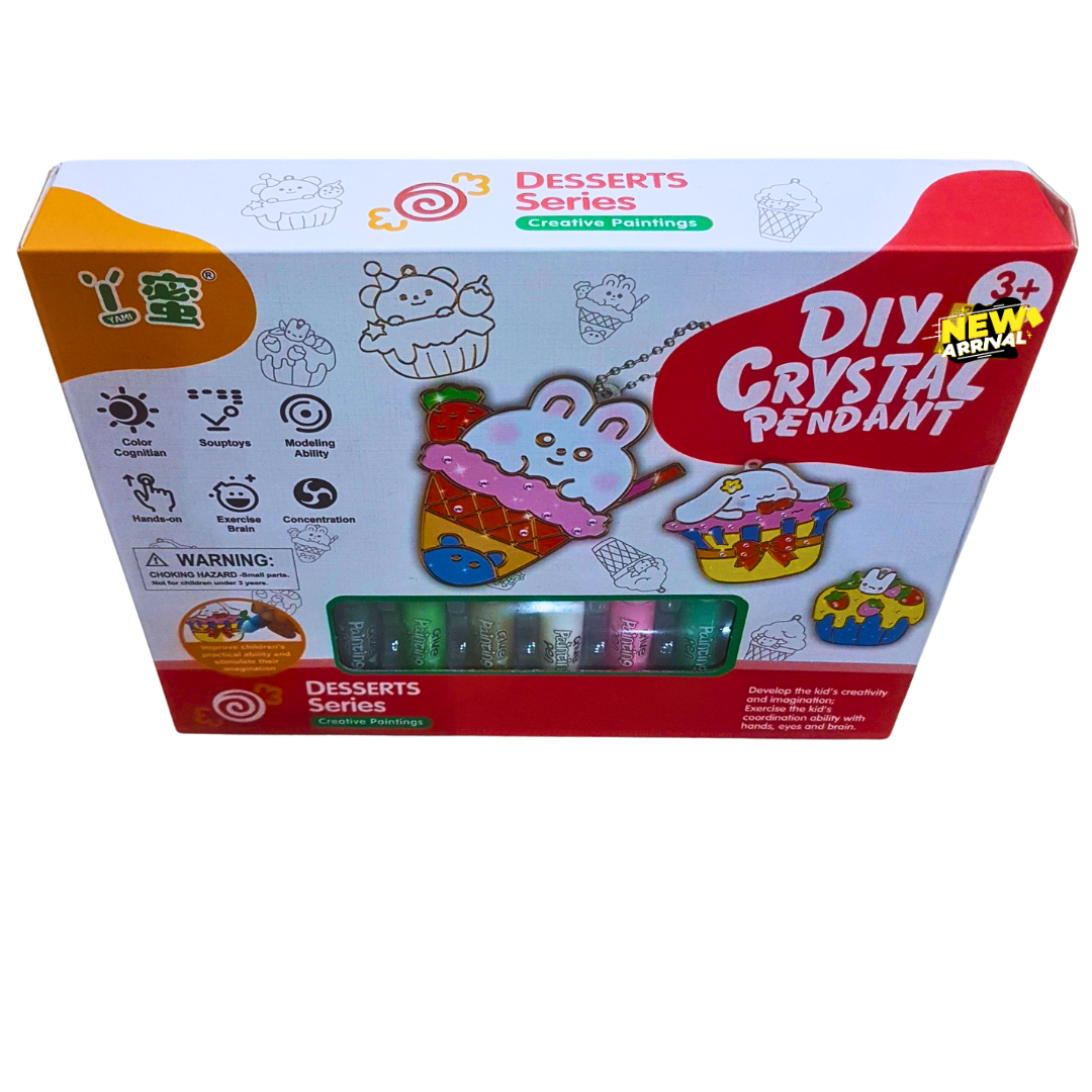 Let your child’s creativity shine with this adorable DIY Crystal Pendant Painting Kit – Dessert Series Edition! Perfect for kids aged 3 and up, this hands-on arts and crafts set allows children to design and color their own dessert-themed pendants using vibrant crystal paints.