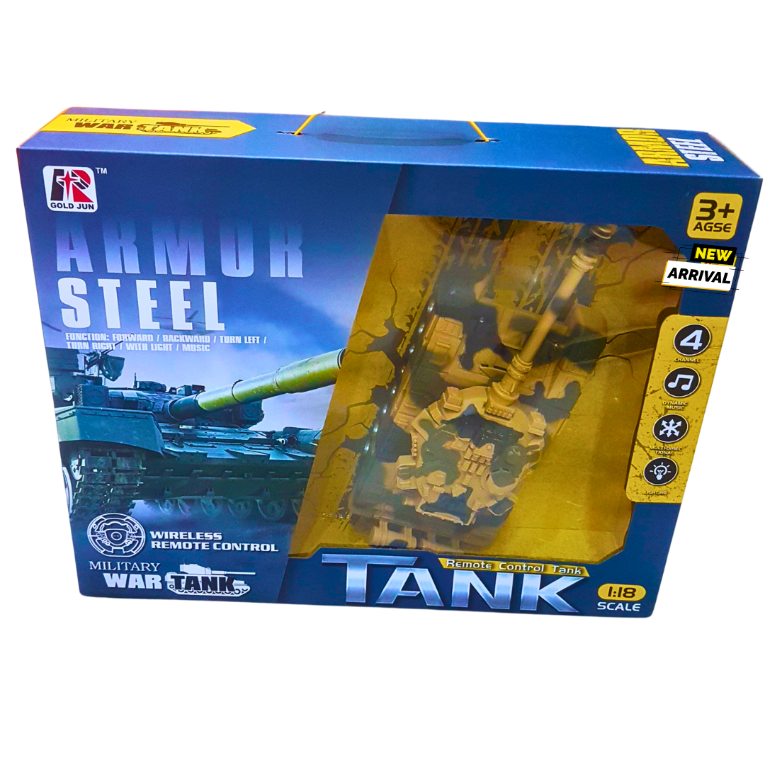 Command your own battlefield with this Remote Control Military Tank! Designed with realistic details, sound effects, and lighting, this 1:18 scale RC tank provides an action-packed experience for kids who love military vehicles and adventurous play.