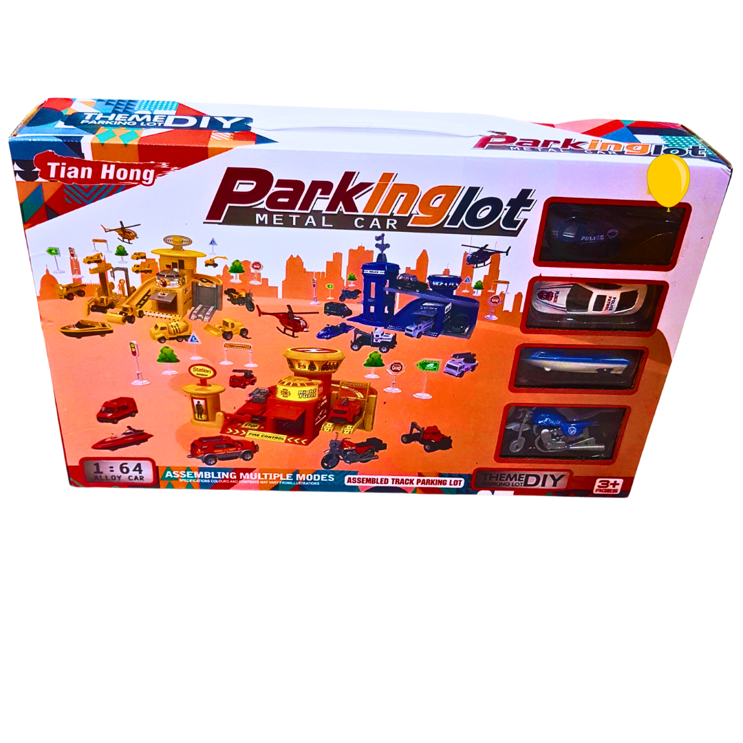 DIY Parking Lot Metal Car Playset | Multi-Vehicle Assembly Track | 1:64 Scale for Ages 3+