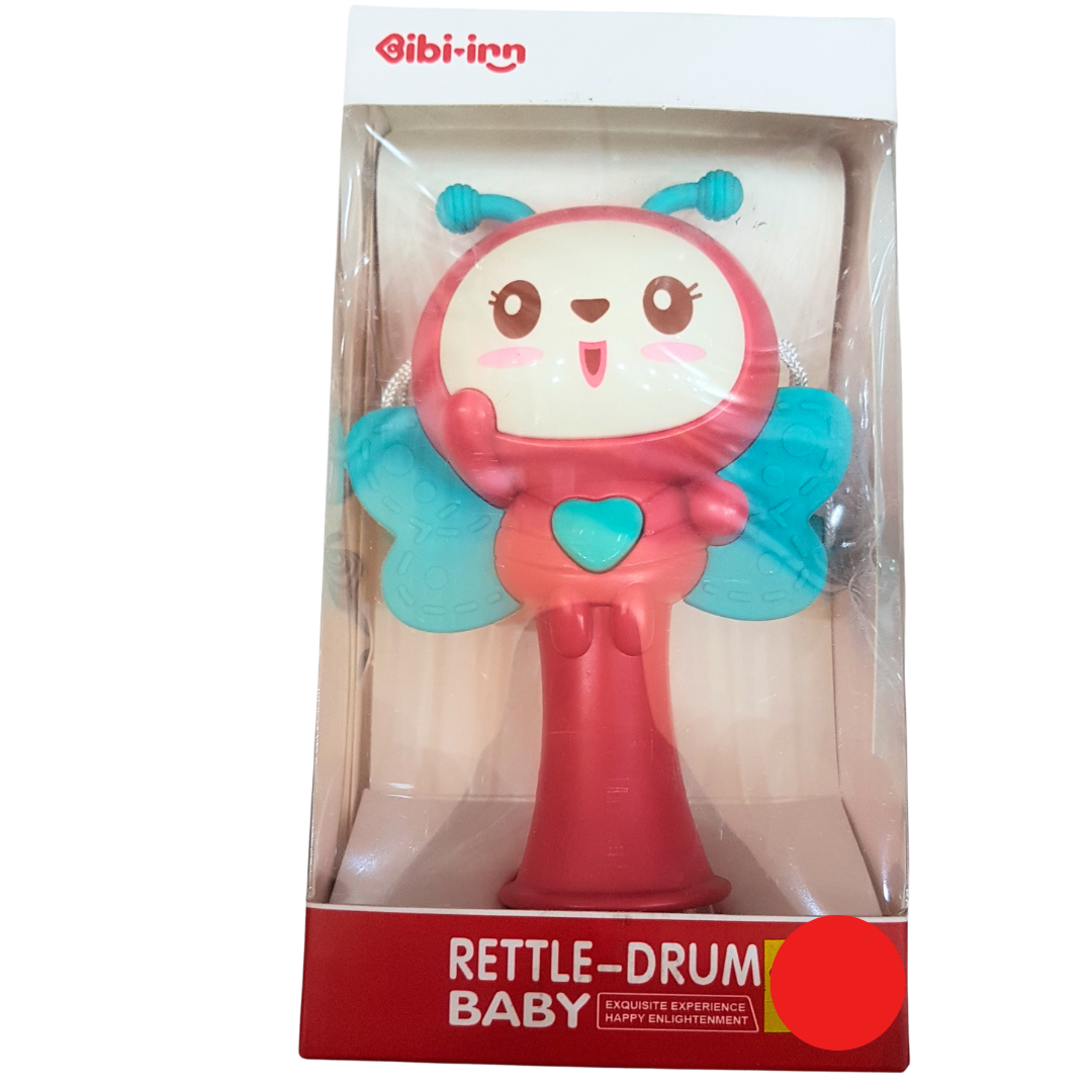 Discover a world of wonder with the Enchanting Butterfly Musical Rattle! This adorable toy is thoughtfully designed to bring joy and development to your baby's playtime. The captivating butterfly character, complete with cute antennae and a friendly smile, invites interaction and provides a character for imaginative storytelling. The deep pink and soft blue colors enhance visual stimulation, while the heart-shaped button on the butterfly's chest activates enchanting music that stimulates auditory senses. The bottom part of the toy is a clear rattle filled with colorful beads that create a delightful sound and visual effect when shaken. Its easy-to-grip handle is perfect for tiny hands, encouraging gross motor skill development as your baby grasps, shakes, and dances to the rhythms. The combination of music, movement, and teething textures makes this butterfly rattle a magical addition to your little one's toy collection.