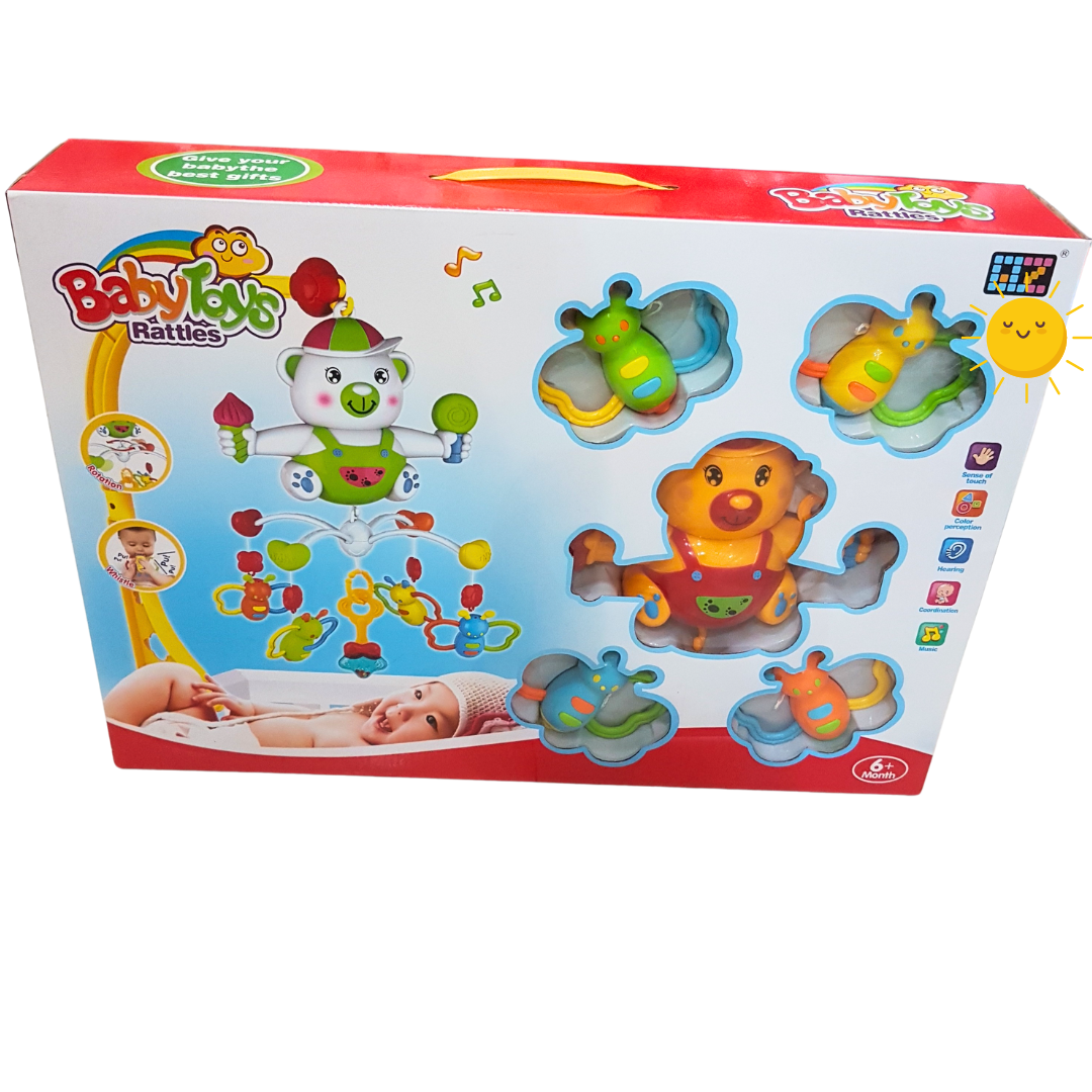 Transform your baby's crib into a haven of soothing sounds and gentle stimulation with our Enchanting Cot Mobile. Designed for infants aged 6 months and up, this mobile features a delightful array of rattle toys that dangle gracefully overhead, capturing your little one's attention with their movement and soft sounds.