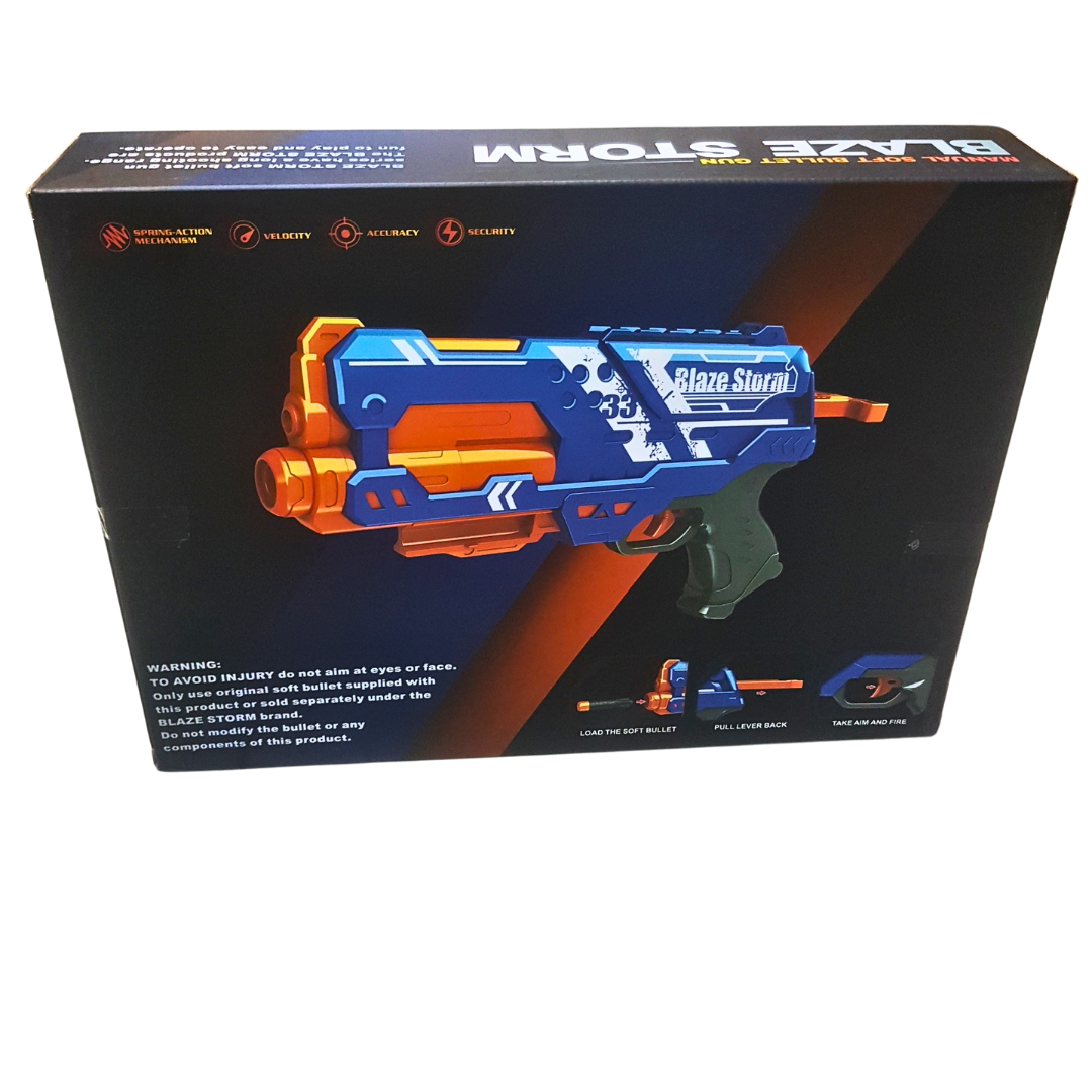 Take your play battles to the next level with the Blaze Storm Soft Bullet Gun! Designed for accuracy, speed, and excitement, this spring-action foam dart blaster is perfect for kids who love adventure and action.