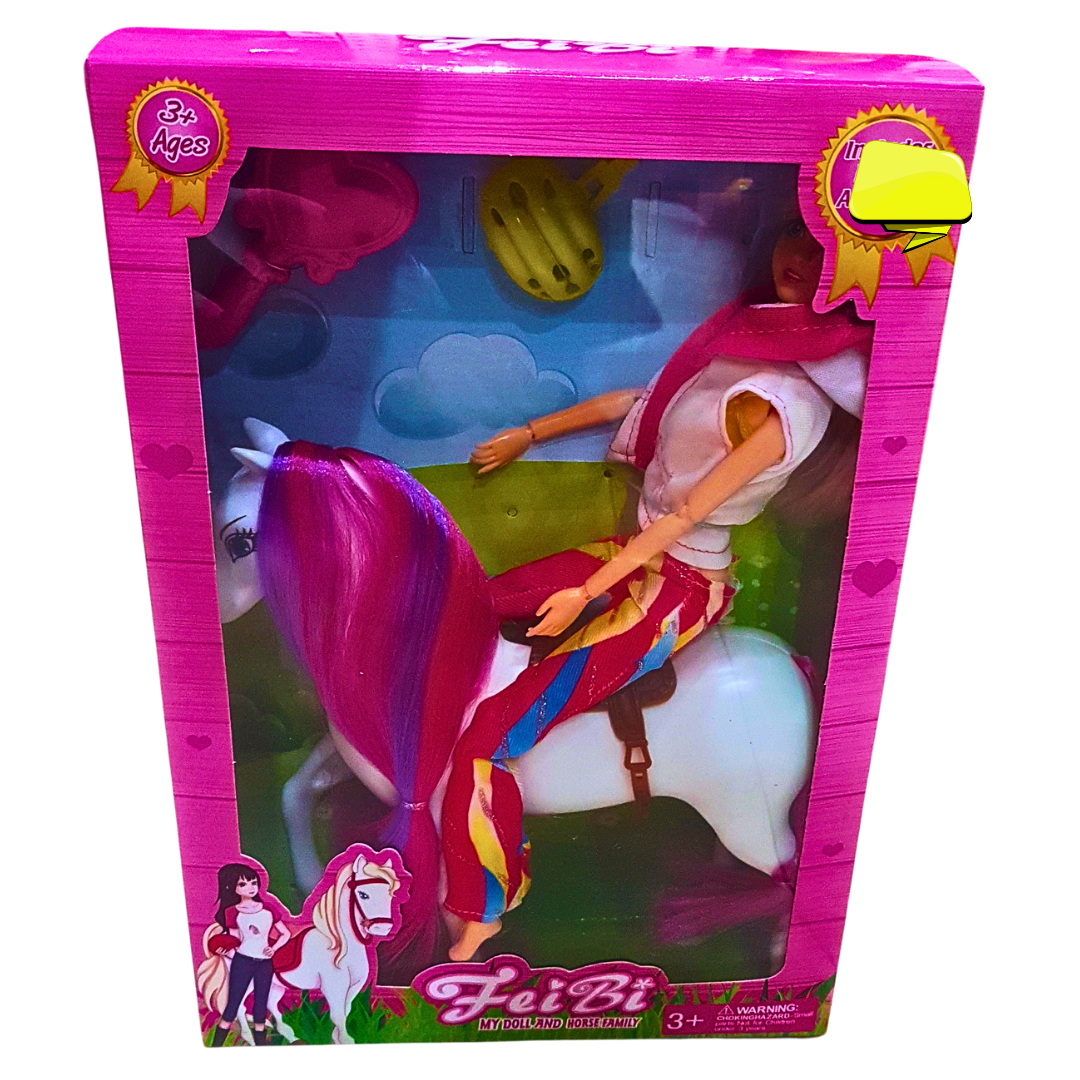 FeiBi Doll and Horse Adventure Set – Stylish Outfit and Accessories for Girls Aged 3+ – Creative and Fun Play