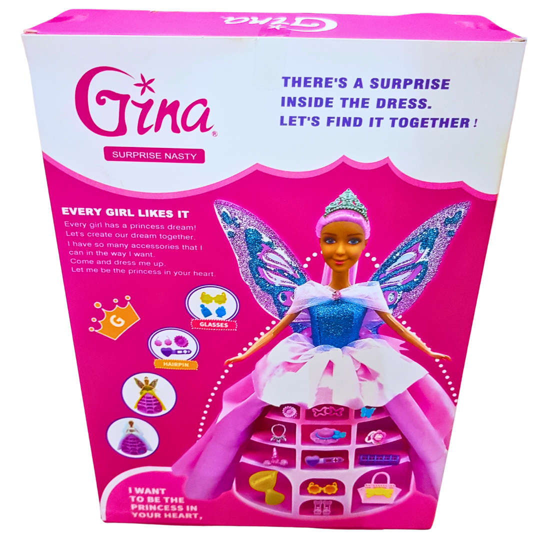 Gina Surprise Princess Doll Set – Elegant Blue Gown Doll with Butterfly Wings and Accessories for Creative Play – Perfect Gift for Girls 3+