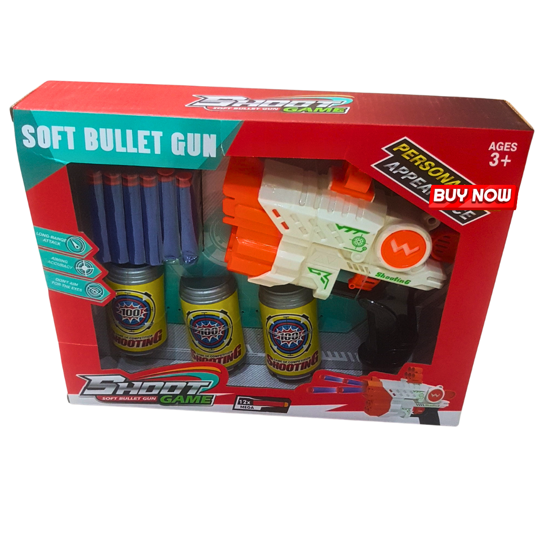Let the fun begin with this exciting Soft Bullet Gun Toy Set – a safe and action-packed shooting game perfect for kids aged 3 and above! This colorful toy set includes a blaster gun, 12 soft foam darts, and 3 target cans, offering hours of engaging play while promoting focus, hand-eye coordination, and motor skills development.