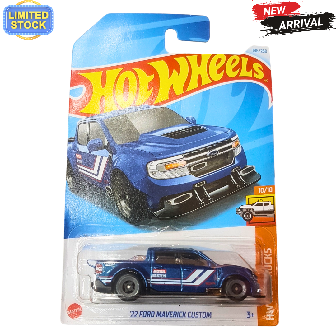 This is a limited stock new arrival from the Hot Wheels 'Movie Jacks' series, featuring a custom 2022 Ford Maverick. This highly collectible piece showcases a modern truck with a unique custom design. It represents the final model in an exclusive series, marked as number 10 out of 10, and is individually numbered 185 out of only 250 total pieces produced. A must-have for truck enthusiasts and collectors of contemporary custom vehicles, this die-cast captures a fresh take on a modern classic. A premier addition to any collection, emphasizing its status as a rare and complete series piece.