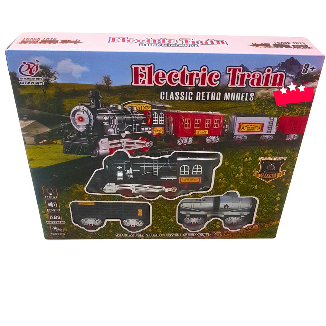 Electric Classic Train Set for Kids – Retro Locomotive Model with Track, Light & Sound | 20-Piece Battery Operated Train Toy (3+ Years)