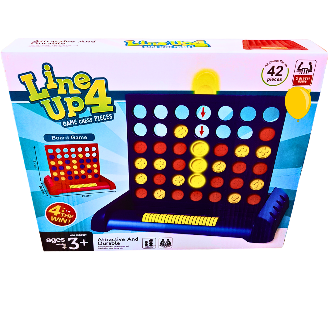 With 42 colorful chess pieces and a durable playing grid, this easy-to-learn game provides endless entertainment for kids and families. Whether you're playing at home, during family game night, or at a party, Line Up 4 guarantees hours of fun.