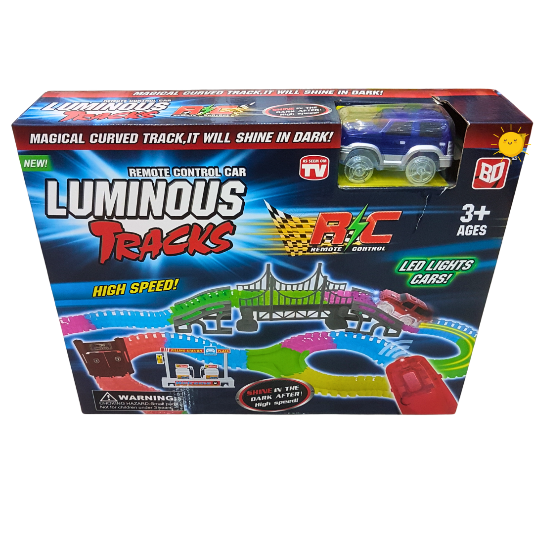 Transform your little racer's playtime with our Luminous Tracks Remote Control Car Set! Designed for children aged 3 and above, this set includes 202 pieces of vibrant, bendable tracks that magically glow in the dark, creating an enchanting raceway that will captivate your child's imagination. The set features high-speed LED light-up cars that add to the excitement and visual spectacle as they zoom around the track.