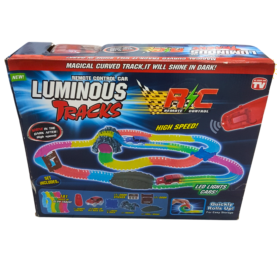 Luminous Tracks RC Car Set - 202 Piece Glow-in-the-Dark Magic Track with High-Speed LED Vehicles