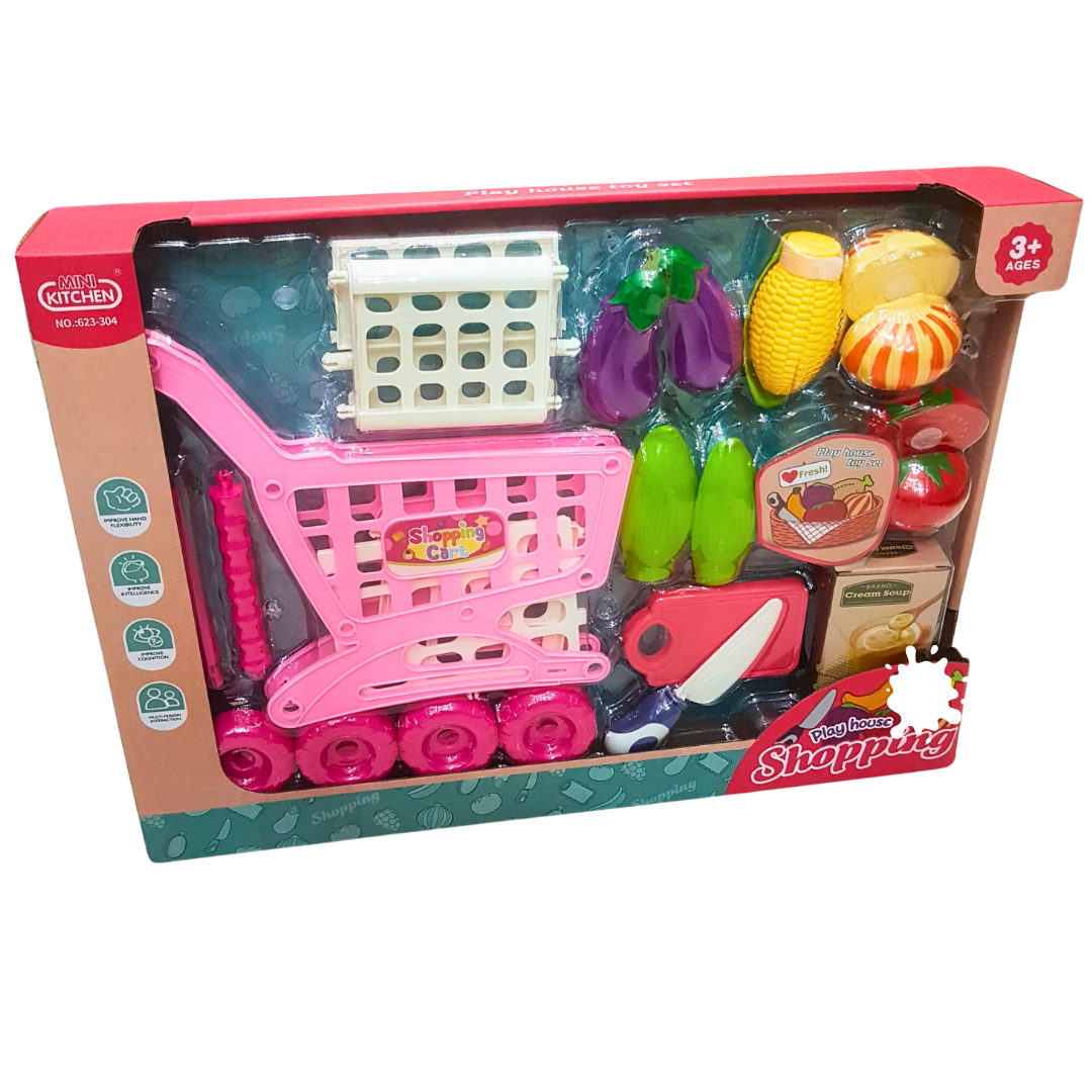 Mini Kitchen Play House Shopping Cart Playset - Fun Grocery Shopping for Kids