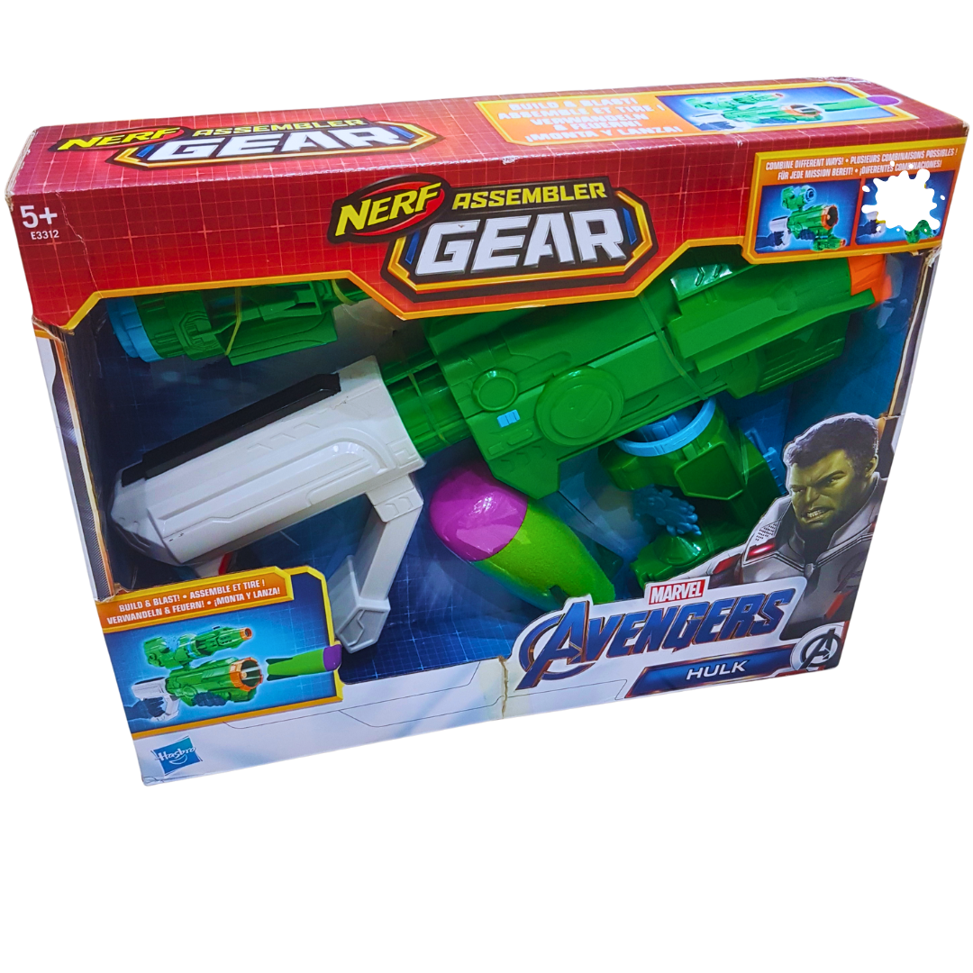 Smash into action with the Nerf Assembler Gear Avengers Hulk Blaster! Perfect for kids aged 5 and above, this customizable dart blaster lets young heroes build and assemble their own unique blaster. Inspired by the incredible Hulk, this blaster combines power and creativity for thrilling battles and imaginative play.