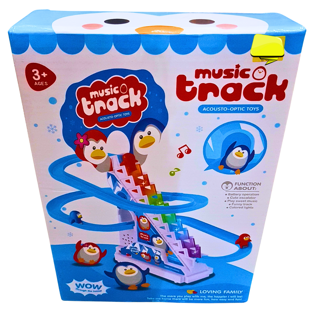 Penguin Musical Slide Playset | Interactive Music Track Toy for Kids | Acousto-Optic Learning Fun