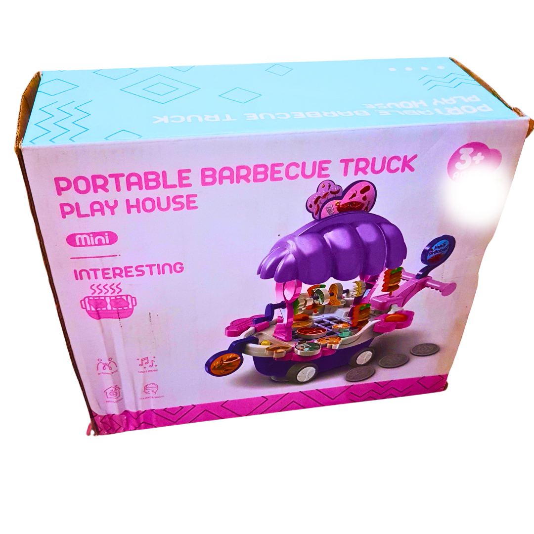 Portable Mini Barbecue Truck Play House – 38-Piece Pretend Play Food Set for Kids 3+