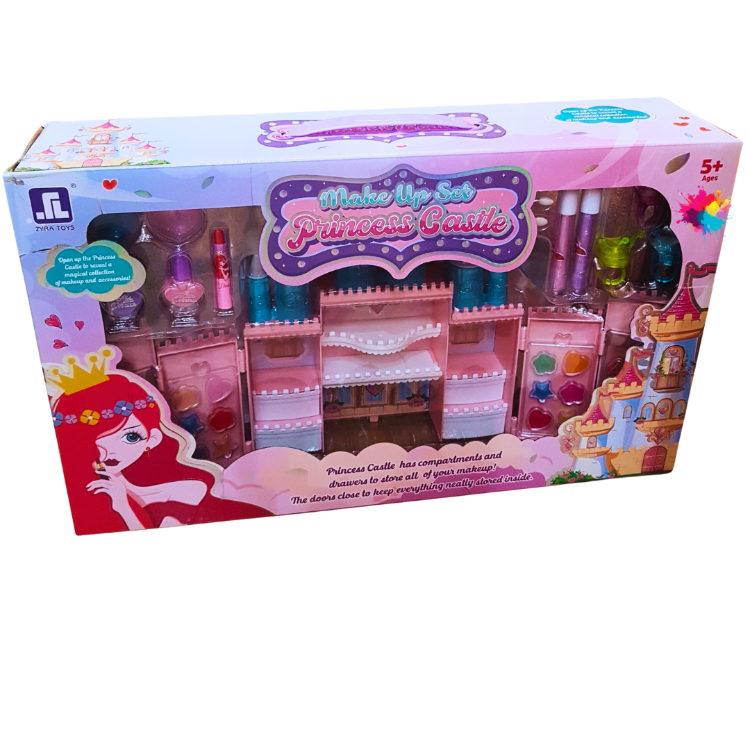 Unveil the magic of beauty and imagination with the Princess Castle Deluxe Makeup Playset, a splendid pretend play beauty salon designed for kids aged 5 and above. This enchanting castle features elegant compartments and drawers filled with a delightful array of pretend makeup accessories, perfect for hours of creative and imaginative play.