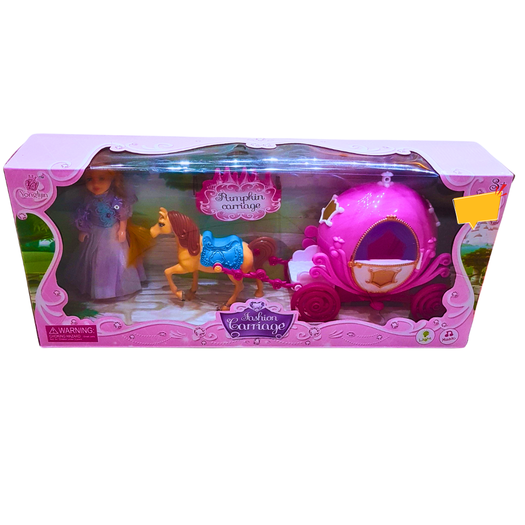Transform playtime into a magical journey with this Princess Doll Pumpkin Carriage and Horse playset. Designed for children aged 3 and above, this enchanting set features a beautifully crafted princess doll, a majestic horse, and a vibrant pink pumpkin carriage, perfect for recreating classic fairytale moments.