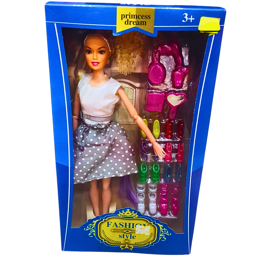 Princess Dream Fashion Doll with Polka Dot Dress & Accessories – Stylish Playset for Kids 3+