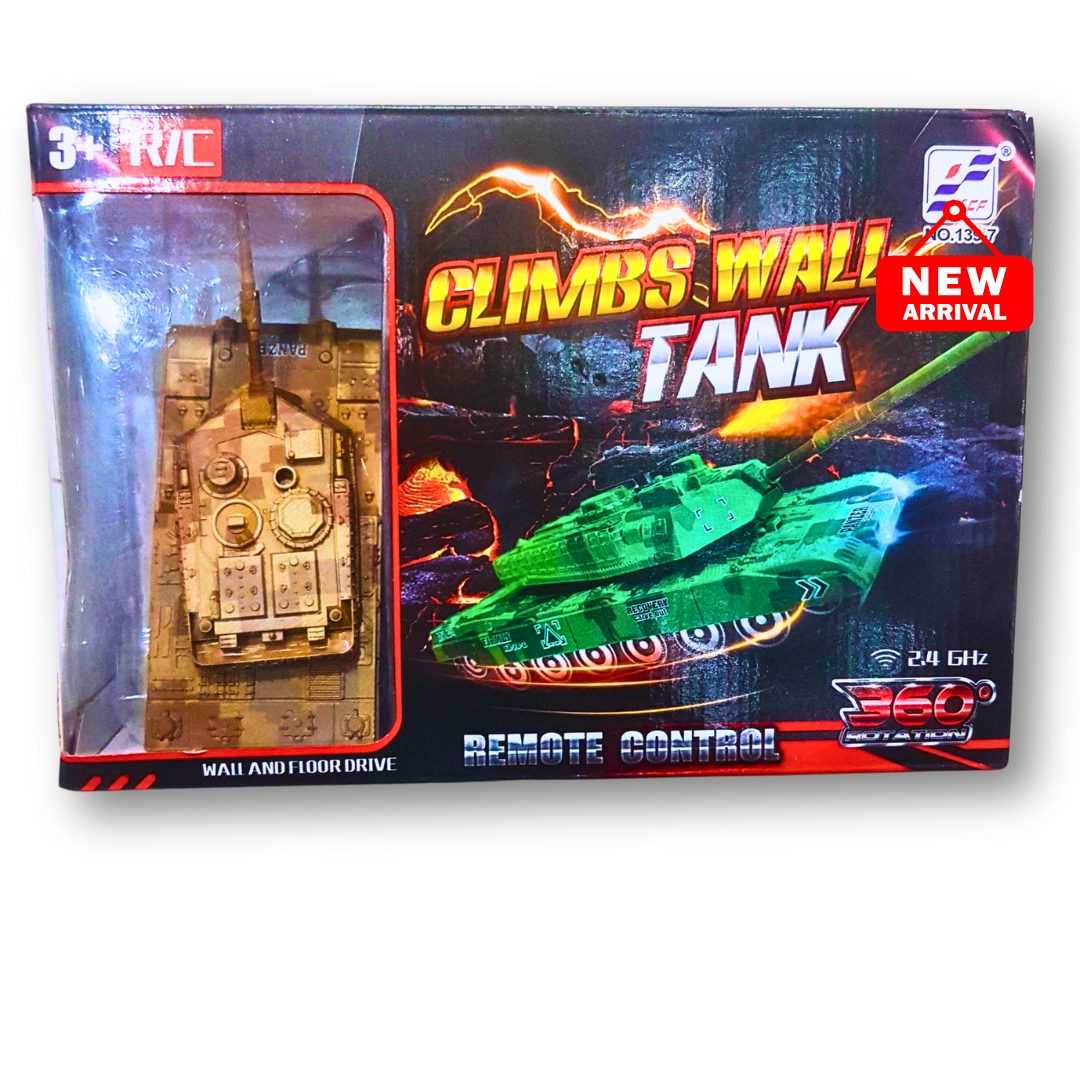🚜 Take the battlefield to new heights with the Wall-Climbing Remote Control Tank! This incredible RC tank climbs walls, ceilings, and floors using advanced suction technology, making it an exciting toy for kids aged 3+. With 360° rotation, 2.4 GHz remote control, and smooth movement, this tank guarantees action-packed fun for adventure lovers!