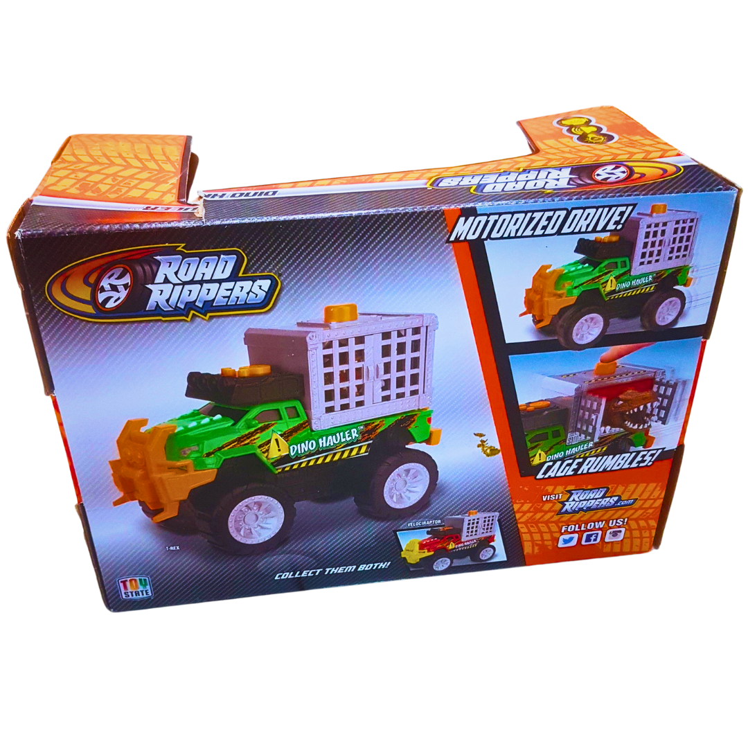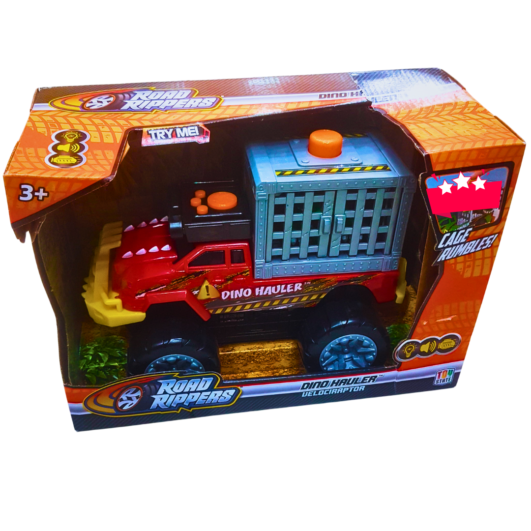Get ready for a wild adventure with the Road Rippers Dino Hauler Velociraptor Truck! This fierce dinosaur-themed hauler truck features a rugged off-road design, dinosaur cage, and cool lights and sounds that bring action-packed excitement to life. With motorized drive and cage rumble action, your little one will love rescuing, hauling, and roaring down imaginary roads!