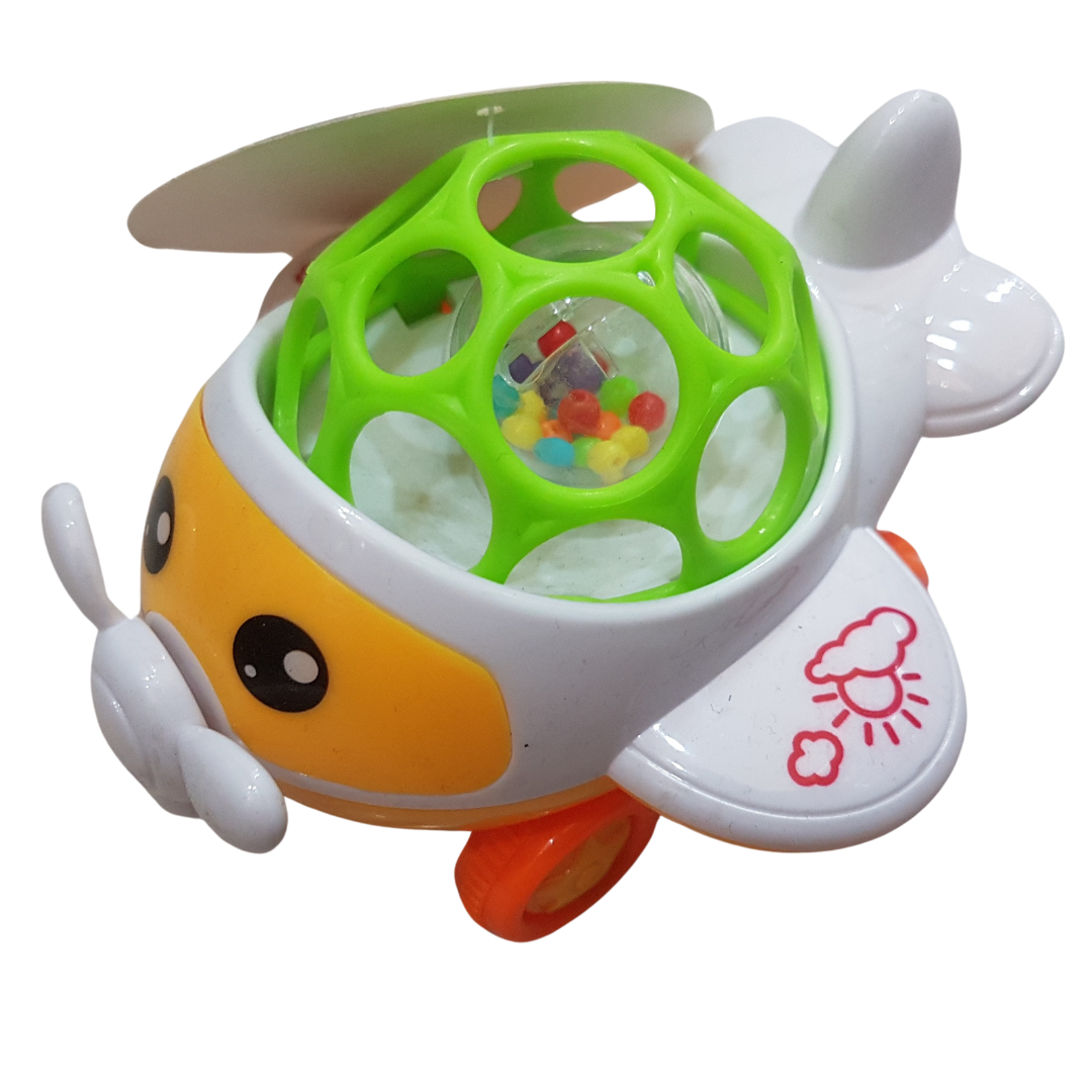 Prepare for takeoff with the Sky Explorer Rattle Plane, a whimsical toy that's ready to soar into the hands of your adventurous little one. This charming aero plane rattle, with its friendly eyes and engaging propellers, offers a delightful experience for young aviators. The bright green and orange colors captivate baby's attention, while the clear dome with colorful beads rattles enchantingly, promoting auditory and visual stimulation. Its ergonomic design is perfect for small hands to grip and hold, encouraging fine motor skill development and hand-eye coordination. The smooth wheels and soft edges ensure safe handling as your baby pilots their imagination across the playroom skies. Perfect for budding explorers, this rattle plane is sure to be a high-flying favorite!