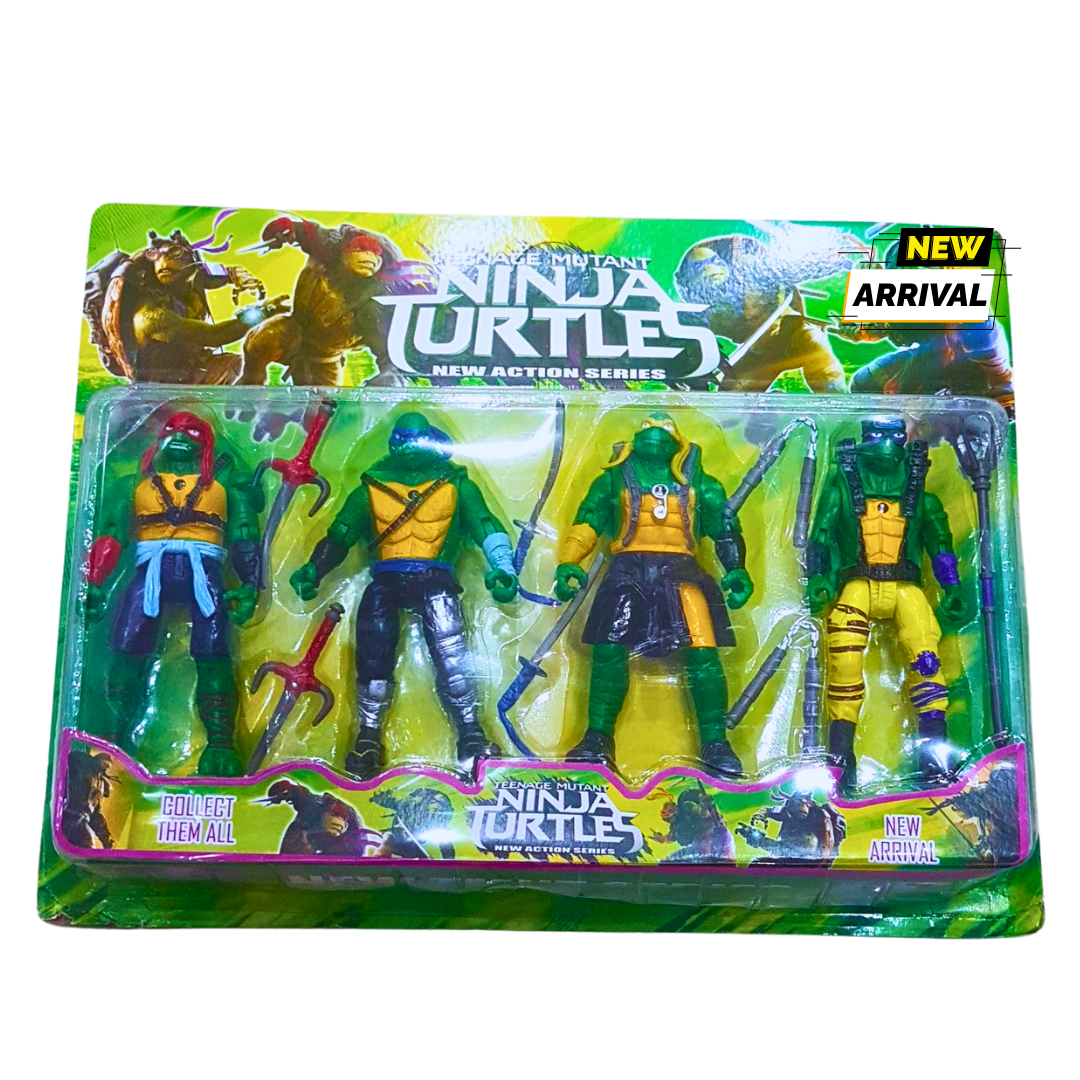 Get ready for epic ninja battles with this Teenage Mutant Ninja Turtles (TMNT) action figure set! Featuring the fearless four turtle brothers, this set is a must-have for fans, kids, and collectors.
