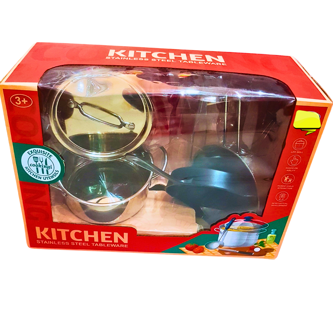 Give your little chef a realistic cooking experience with this Stainless Steel Kitchen Playset! This beautifully crafted pretend play set includes a variety of kitchen utensils and cookware such as pots, pans, ladles, and more. Made from durable stainless steel, this toy set is perfect for children who love to mimic real-life kitchen activities.