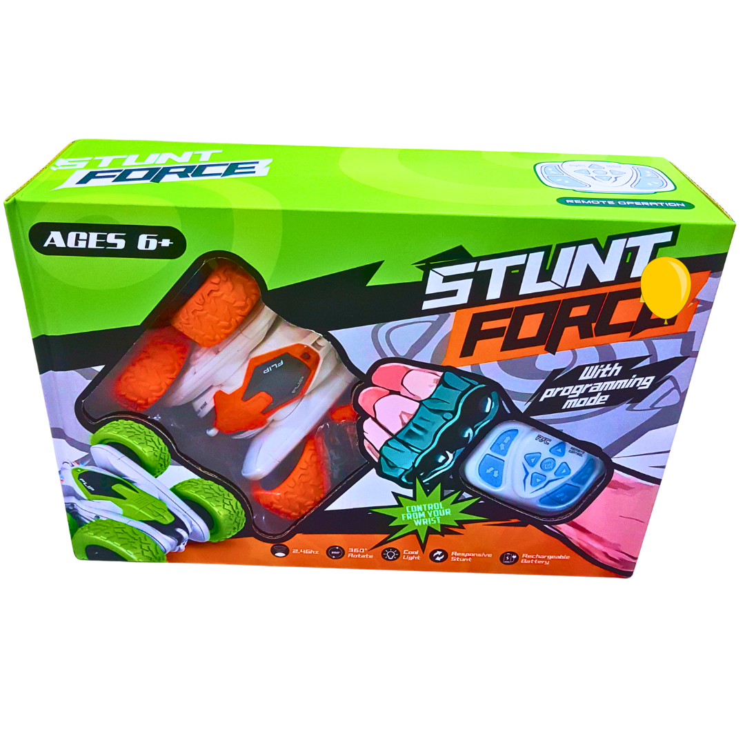 Unleash the power of stunts with the Stunt Force RC Car! This high-tech remote control car features 360° rotations, gesture control, and a unique programming mode, allowing kids to perform cool tricks and create custom movements. Equipped with responsive stunt wheels and bright LED lights, this car brings a futuristic edge to any race. With a glove-like controller that reacts to hand motions, kids aged 6 and up can take full control for an action-packed playtime. Designed for durability and fun, this stunt car is perfect for indoor and outdoor adventures. Rechargeable for endless play, it’s a fantastic gift for young car enthusiasts!