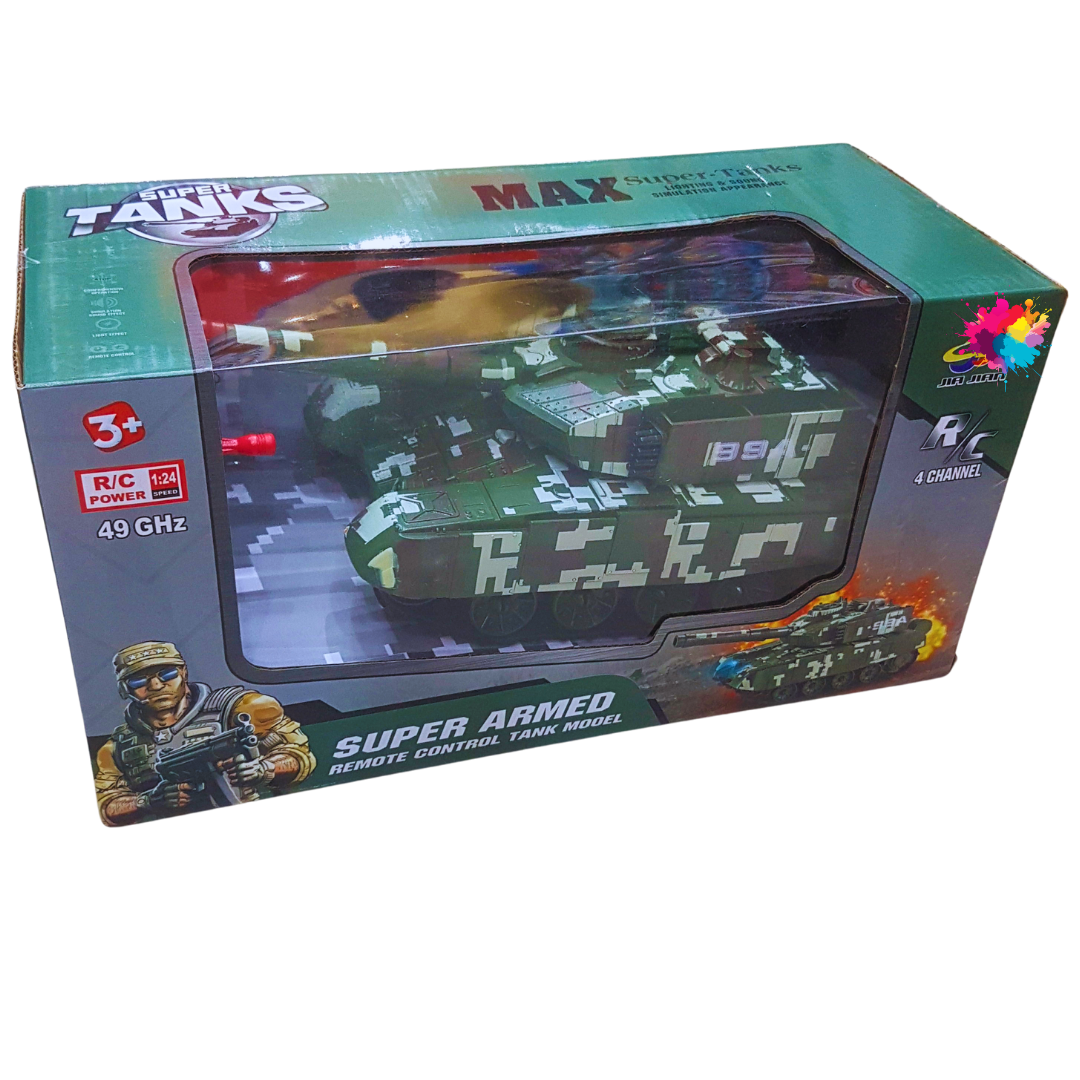Unleash the power of military strategy with the Super Armed Remote Control Tank! Designed for kids aged 3 and up, this 1/24 scale RC tank offers realistic battlefield action and endless fun. With its camouflaged design, powerful movement, and easy-to-use remote control, this tank is perfect for young adventurers ready to command their own missions.