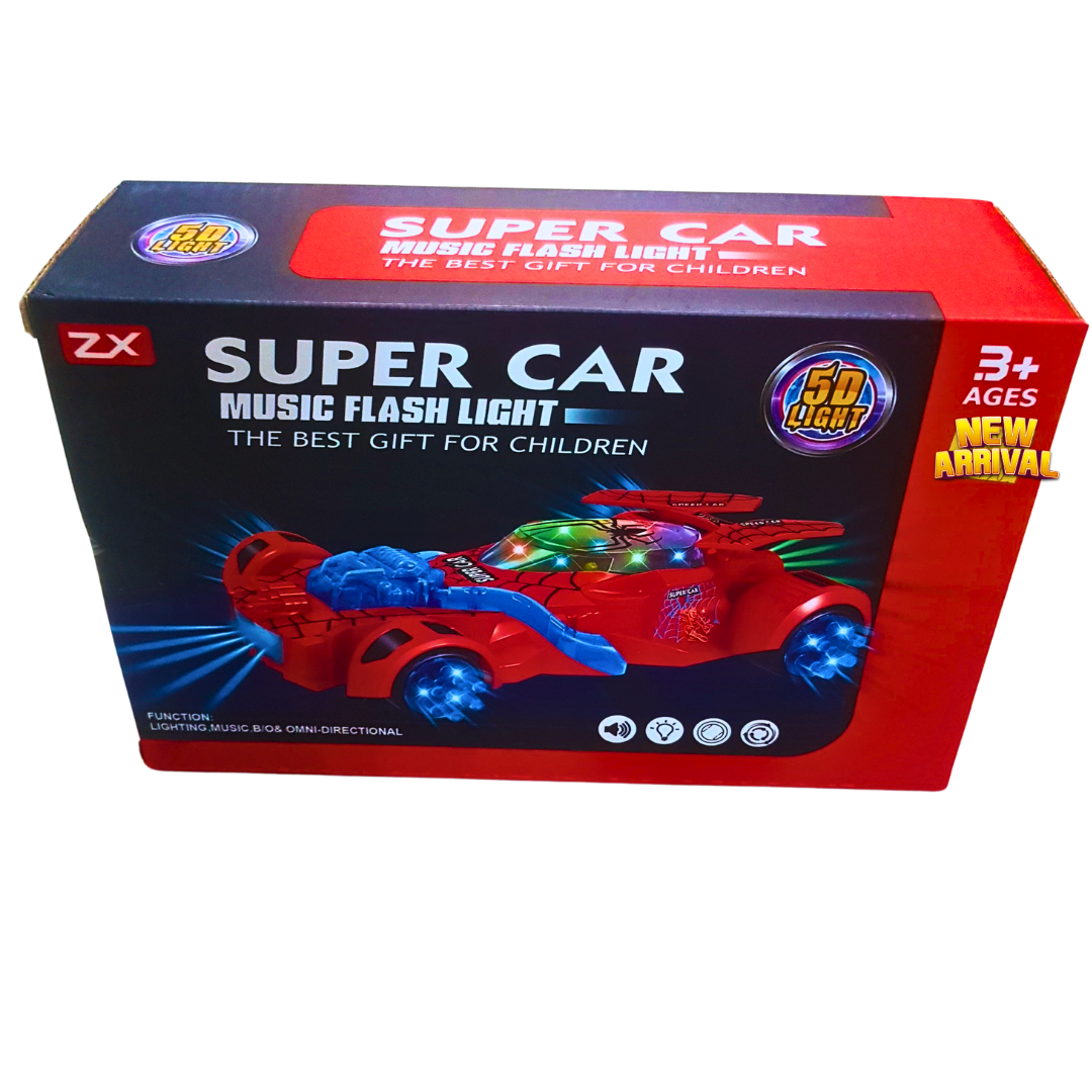 Superhero Flashing Car Toy for Kids – 5D Lights, Music & Bump-n-Go Action | Battery Operated Super Car for Boys Age 3+