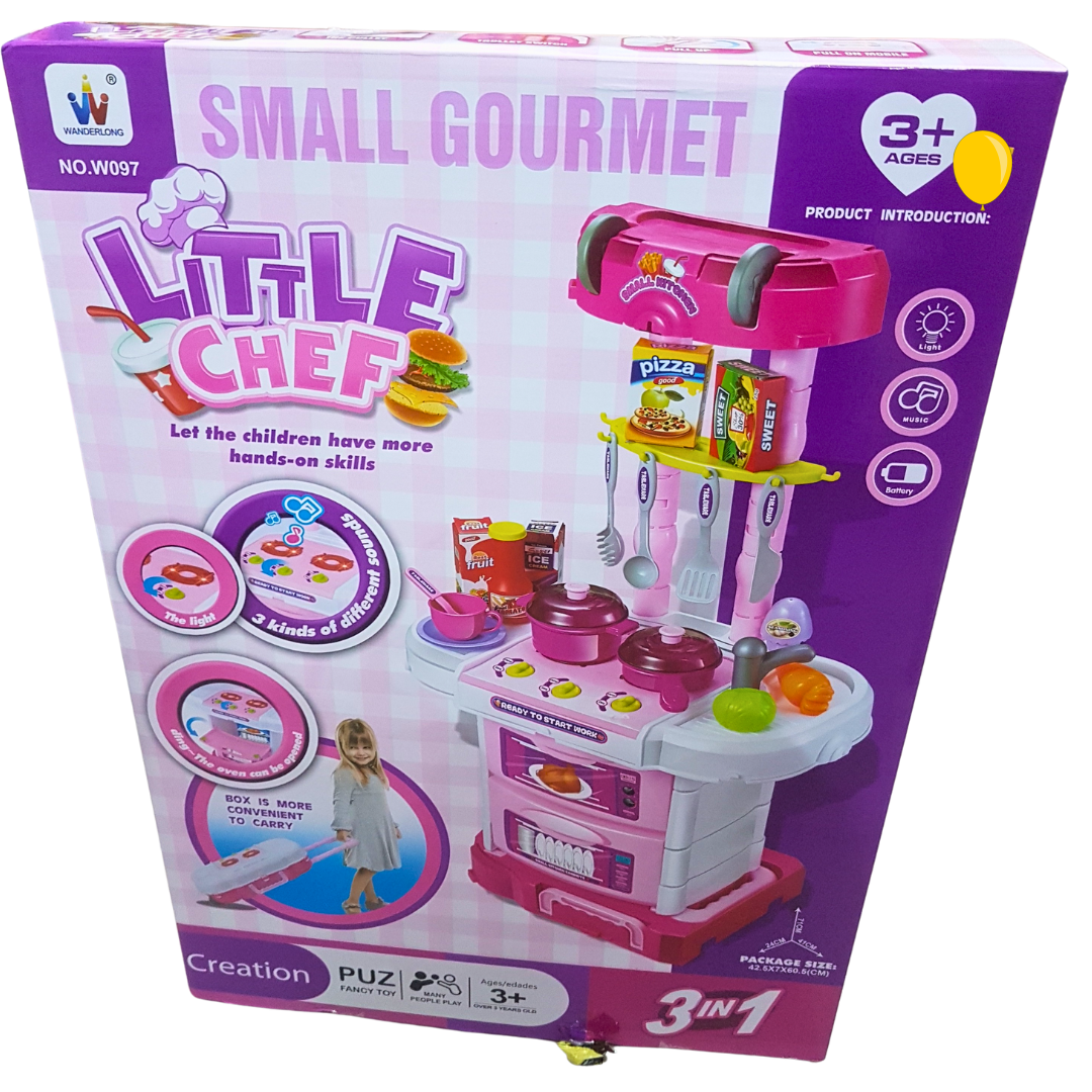 The Tiny Tot Chef Station is the perfect 3-in-1 playset to nourish the culinary curiosity of little chefs aged 3 and above. This Small Gourmet Kitchen encourages children to explore a variety of food preparation activities with its engaging sound and light effects that mimic real kitchen appliances.